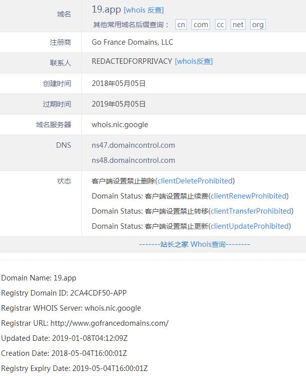 域名19.app注冊(cè)時(shí)間是2018年05月05日,從品相來看,投資人和終端都喜愛這類域名,字符簡短,便于記憶和輸入,在建站上也沒有明確的行業(yè)指向,還能起到不錯(cuò)的宣傳推廣的作用。查詢Whois信息顯示,域名19.app于1月8日4時(shí)信息更新,交易達(dá)成時(shí)間應(yīng)該更早一點(diǎn)。