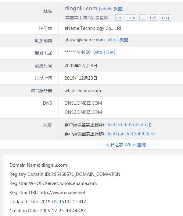 查詢發(fā)現(xiàn)域名dingniu.com是一枚七字母雙拼米,注冊于2005年12月,至今已有將近14年的時間,直譯成中文有“頂牛、鼎牛、鼑牛、定牛、釘鈕、頂鈕”等諸多含義,屬于常見的名詞,簡單好記便于傳播。在應用上適用于金融、房地產(chǎn)、債券、彩票等行業(yè),具有很高的投資價值和商業(yè)應用價值。其中“頂牛”含義對應不少有實力的終端品牌,如:頂牛網(wǎng)(dingniu888.com)、頂牛股網(wǎng)(dingniugu.com)、頂牛論壇(dingniu5.com)等。