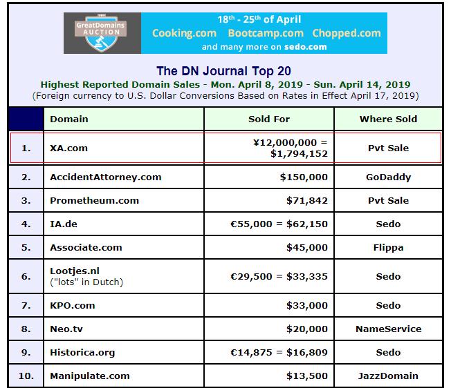 但隨著新一期DN榜發(fā)布,XA.com域名的真實成交價格終于曝光,高達人民幣1200萬元,領銜榜首。