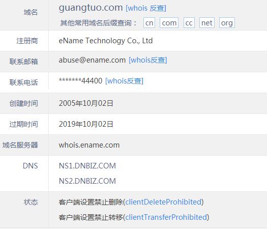 查詢發(fā)現(xiàn)guangtuo.com注冊(cè)于2005年10月,至今已有將近14年的時(shí)間,從含義上看,guangtuo.com有“廣拓、光托、光拓、廣拖、廣托、廣坨、廣駝”等含義,建站上沒有明確的行業(yè)指向,在應(yīng)用上適用于光纖、云計(jì)算、電子設(shè)備、社交等行業(yè),具有很高的投資價(jià)值和商業(yè)應(yīng)用價(jià)值。比如“廣拓”這個(gè)含義,就對(duì)應(yīng)廣拓電子圍欄、廣拓網(wǎng)絡(luò)、廣拓生物等終端。