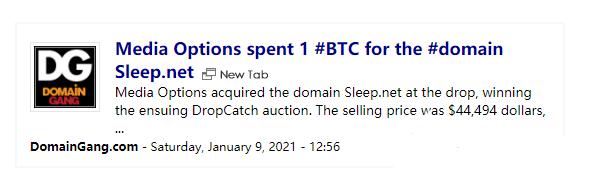 據(jù)whosi信息顯示,域名sleep.net也是過期刪除后易主,重新注冊的時間是去年12月30日。據(jù)悉,在拍賣前,這枚域名起初出售價為44,494美元。后來Media Options公司贏得拍賣,以1個比特幣的價格收購了sleep.net。折合美元算的話,sleep.net交易價為35,000美元,也就是人民幣22萬元。值得一提的是,該域名被同一持有人持有了23年,如此突然的過期掉落令人遺憾,而外媒也猜測會不會是因為“新冠病毒”的原因導致的,目前也沒有具體的說法,且該域名持有人也沒有任何回應。